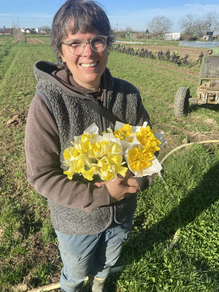 Die Idee für FiORAMiRA entstand im Mai 2025. Eine liebe Freundin schenkte mir zum Geburtstag einen Besuch bei Wildling Blumen in Müllheim und ich war hellauf begeistert! Bis dahin wusste ich nicht, dass man auch hier bei uns Schnittblumen zum Beruf machen kann. Was dann am Anfang eine Träumerei war, wurde schnell zur Wirklichkeit und ich habe noch im Sommer begonnen, die ersten Versuche mit Blumen bei uns in der Gärtnerei zu machen. Vor allem ein großes Dahlienbeet hat mir große Freude bereitet und ich konnte im Spätsommer und Herbst die ersten Blumen ernten und als Sträuße verkaufen.